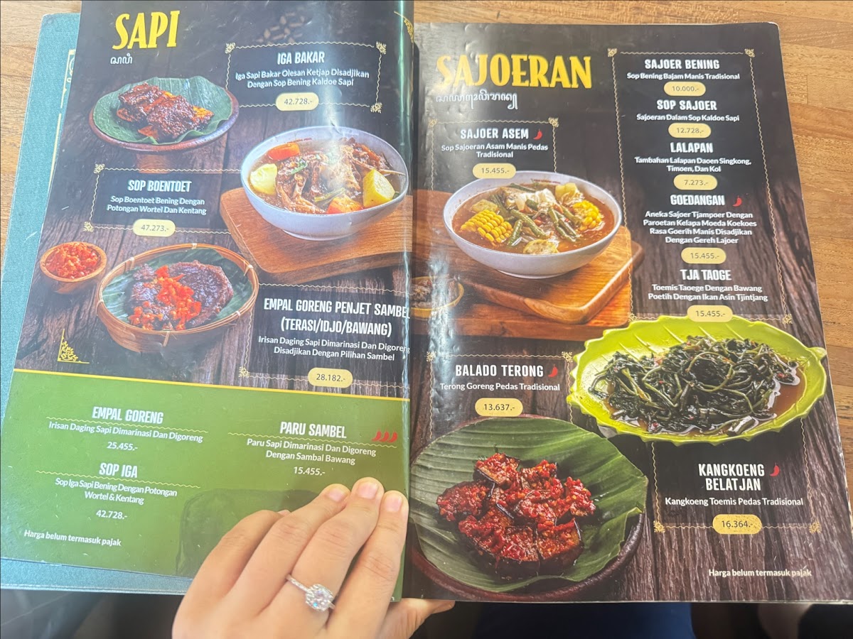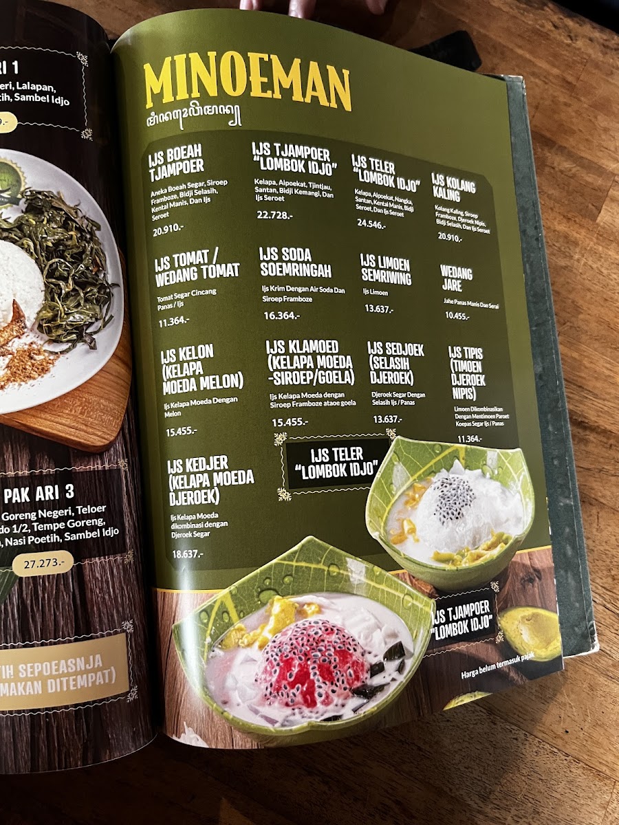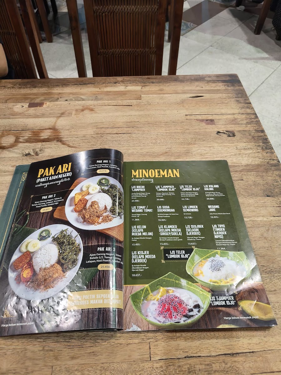 The highlight of the menu is undoubtedly their famous fried chicken, renowned for its crispy texture enhanced by a special kremes granules. Accompanied by a tantalizing green sambal, the blend of flavors is simply irresistible. The diverse menu features a variety of Indonesian dishes, including fish, vegetables, and delectable egg options, catering to all tastes.